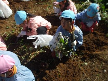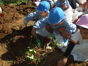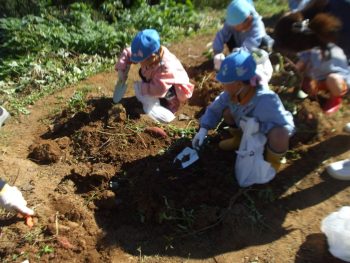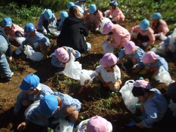 10月29日(水)、幼稚園の収穫体験の様子です。園児たちは行儀よくならんで掘り取りしていました。掘り残しもなく上手に掘れていました。ありがとうございました。